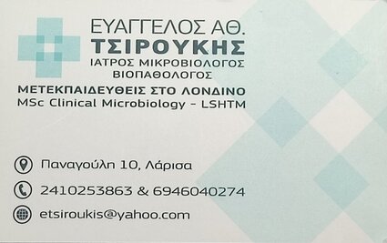 1) ΤΣΙΡΟΥΚΗΣ ΕΥΑΓΕΛΟΣ ΑΘ. : Μικροβιολογικό Εργαστήριο Λάρισας -